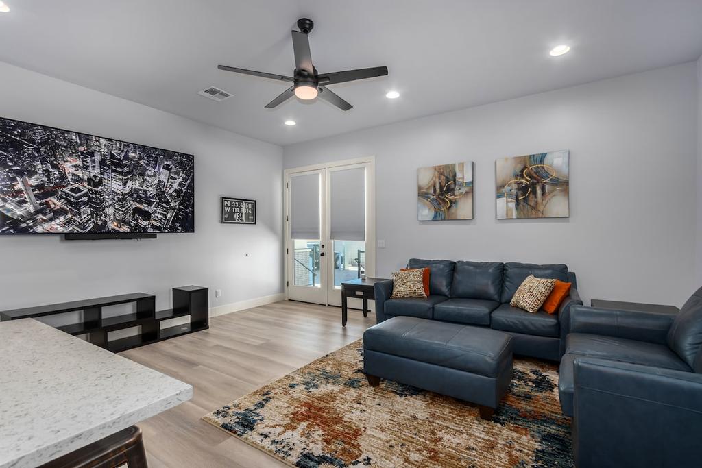 The house is a 4 bedroom 5 bathroom duplex and this room would have a private bathroom upstairs. The room comes with a dedicated electronic lock on your door to ensure you're private space is 100% private. The only other person who would have a code is the host and would only use it in emergency situations. Each room comes with a dresser, desk, chair, nightstands, lamps & the bed. The closets will have hangers so you can hang clothes as well. The rooms are professionally cleaned prior to each stay. You'll also have access to the rest of the house which includes a family room, kitchen & laundry room. These areas are shared among the guests and is professionally cleaned every other week. The kitchen is fully stocked with all the appliances & accessories needed to cook a meal. The living room has a 85 inch TV ready for any movies you may want to watch!
