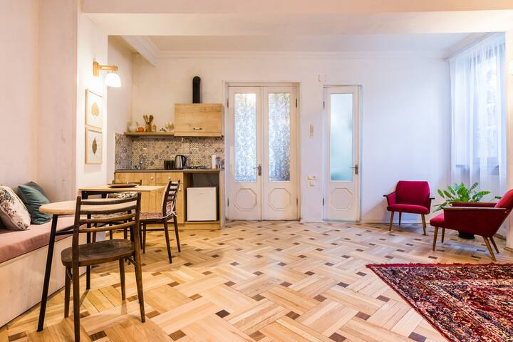I'm happy you have decided to travel in my country. Georgia is a very interesting destination for adventurous tourists. “Zemelihouse 2” is located 3 minutes’ walk from Rustaveli Ave (160m). At the same time, Sarajishvili street is isolated and protected from the city noise and crowed. “Zemelihouse 2” is located 3 minutes’ walk from Rustaveli Ave (160m). At the same time, Sarajishvili street is isolated and protected from the city noise and crowed. The street is overlooked by the beautiful construction of the TV Tower. “Zemelihouse 2” is house is designed and arranged entirely for your comfortable stay and rest. The house has little and cozy back yard. Its art-design will add special charm to your evenings. It is a best place for rest, after your hard day. From the touristic point of view the location of the house is ideal. It will take you only three minutes to walk by the pedestrian road to the Rustaveli ave, which is full of different landmarks like bars and restaurants with fast, European, Asian or national food, shopping centers, museums and galleries. And there is a subway as well, five minutes away. Wish you a pleasant holiday! Consider me as a host and a friend, who will gladly help you in case of any problem, to make your trip as memorable as possible.